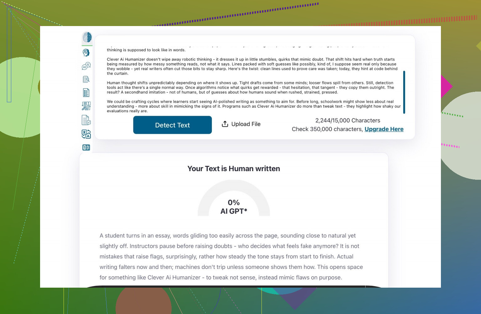 とはいえ、検索されることの多い検出ツールの1つではあるので、Clever で処理した文章を投げ込んでみました。