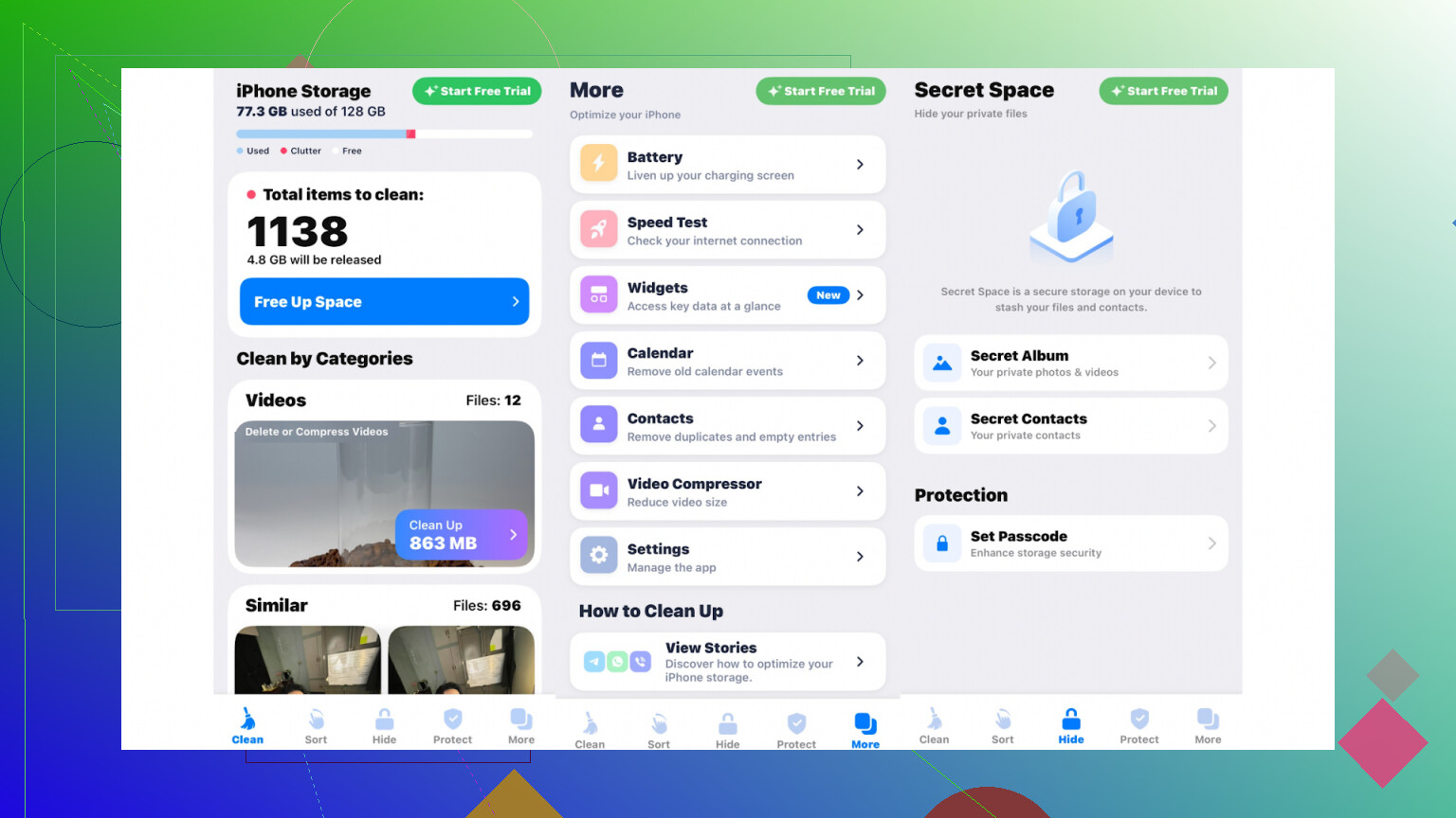 Z łatwością najlepsza darmowa aplikacja do czyszczenia bałaganu na iPhone’ie! Idealna dla tych, którzy szukają wydajnego i bezproblemowego czyszczenia bez wydawania ani grosza.