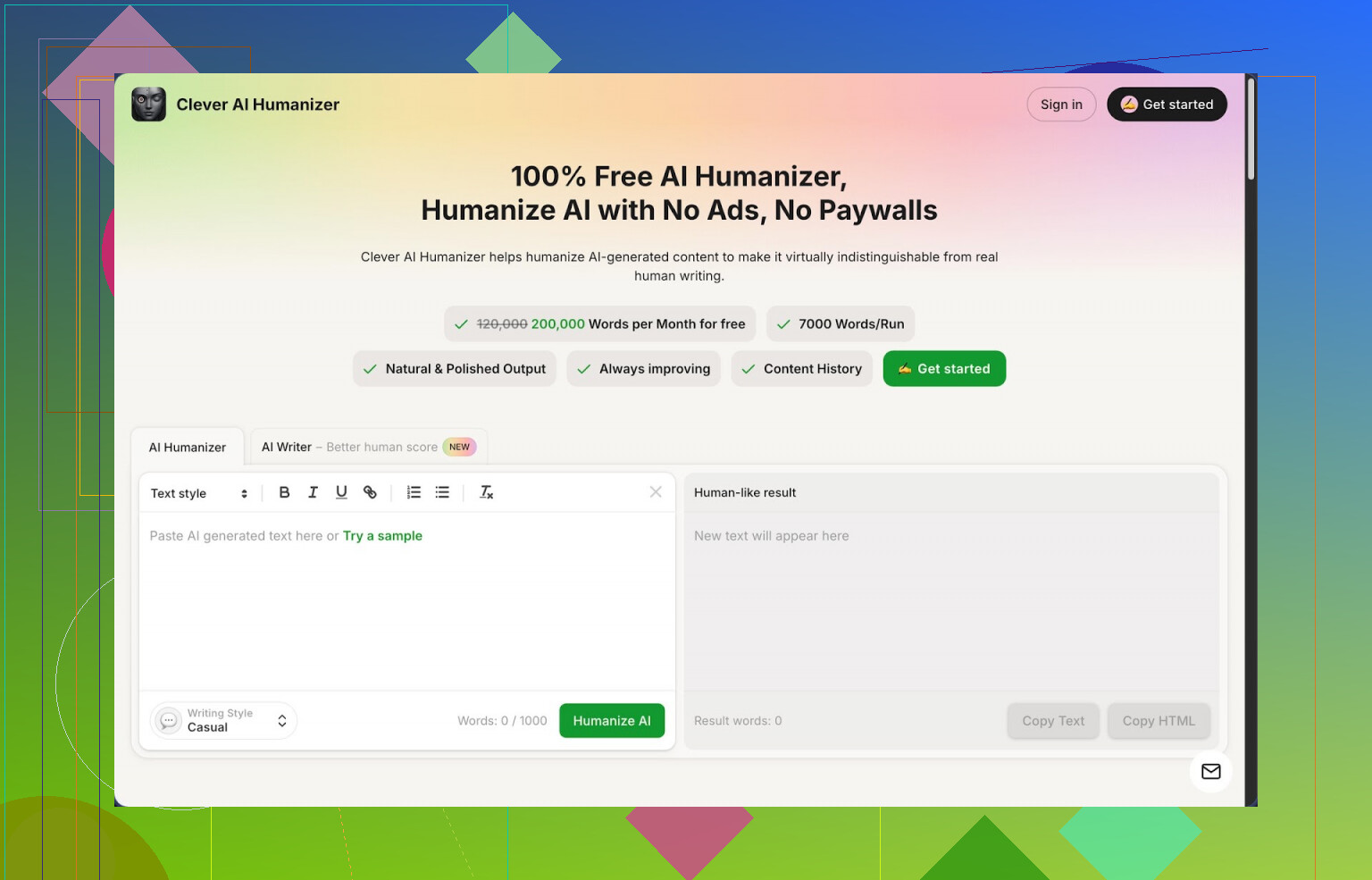 Se ti serve un humanizer tipo Writesonic con limiti gratuiti più alti, Clever Ai Humanizer è la risposta più diretta.