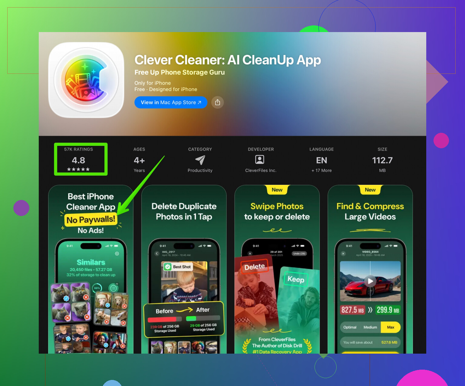 libérer de l’espace iPhone avec Clever CleanerCe qu’elle permet généralement de faire :