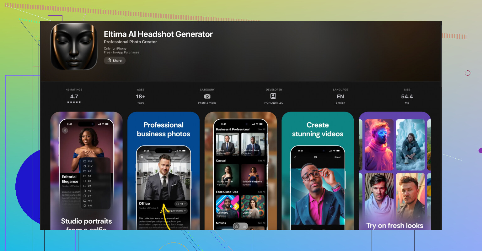 In that case, skip the mystery banana and use a proper tool. For example, for AI portraits and professional profile photos on iPhone, the Eltima AI headshot app is an actual real thing. You can install it from the App Store here: