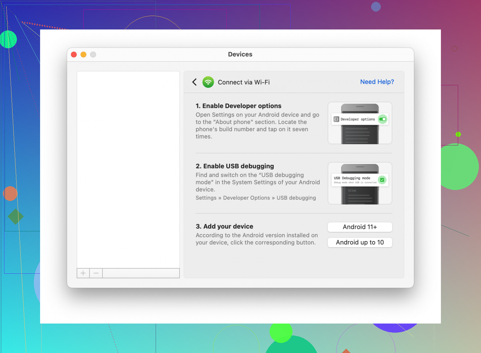 Link with QR Code: Tap “Pair device with QR code” on your phone and point it at the QR code MacDroid throws up on your Mac’s screen.